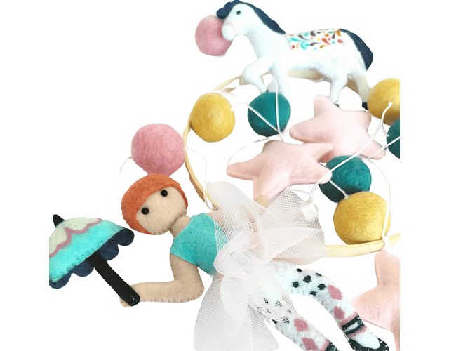 Todos nuestros móviles son un trabajo en colaboración con Mundo móvil bebe quien se encarga de fabricar y desarrollar todos los diseños de nuestras colecciones , todos ellos son confeccionados por mujeres Chilenas , con materiales de la mas alta calidad , cerca del 70% de los materiales son importados entre los cuales se encuentran los textiles no tejidos , fieltro brasileño y coreano , y lana peinada de oveja cruda de origen Argentino , su teñido es de forma manual con colorantes orgánicos de origen vegetal , todas las partes y piezas son confeccionadas a mano de forma manual , así mismo la decoración y montaje del producto terminado .